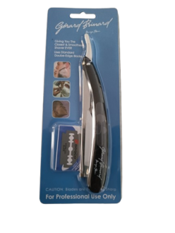 Wilt u een gladde scheerbeurt in klassieke stijl? Dan is scheren met een open scheermes de enige manier. Dit Klap scheermes van Gerard Brinard is geinspireerd op de traditionele scheerbeurt van vroeger, toen vaardigheid en precisie aan de orde van de dag waren. Nat scheren geeft meestal een gladder resultaat dan scheren met een elektrisch scheerapparaat. Dit Klap scheermes werkt als een open scheermes, maar is voorzien van verwisselbare, dubbelzijdige mesjes, zodat slijpen overbodig wordt. Het scheermesje kan na gebruik worden ingeklapt, waardoor de mesjes in het handvat verdwijnen. Dit is om een optimale veiligheid te garanderen. De steel van dit Klap scheermes is gemaakt van hoogwaardige kwaliteit kunststof waardoor deze lang me gaat en makkelijk schoon te houden is